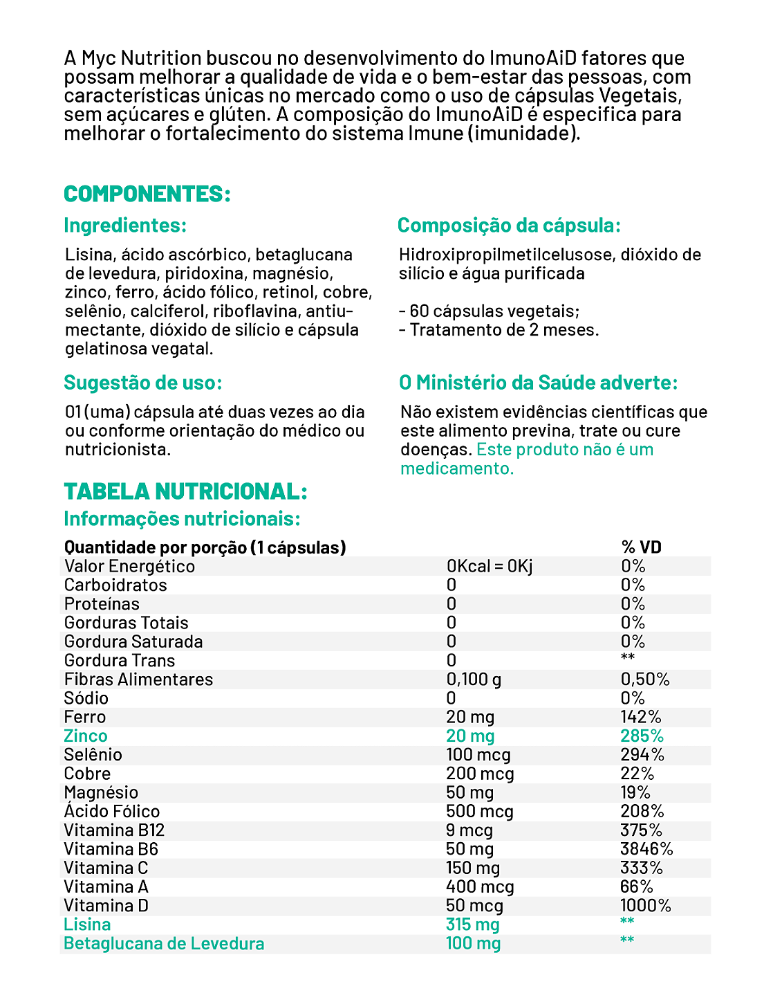 ImunoAiD 60 Cápsulas Vegetais - Myc Nutrition